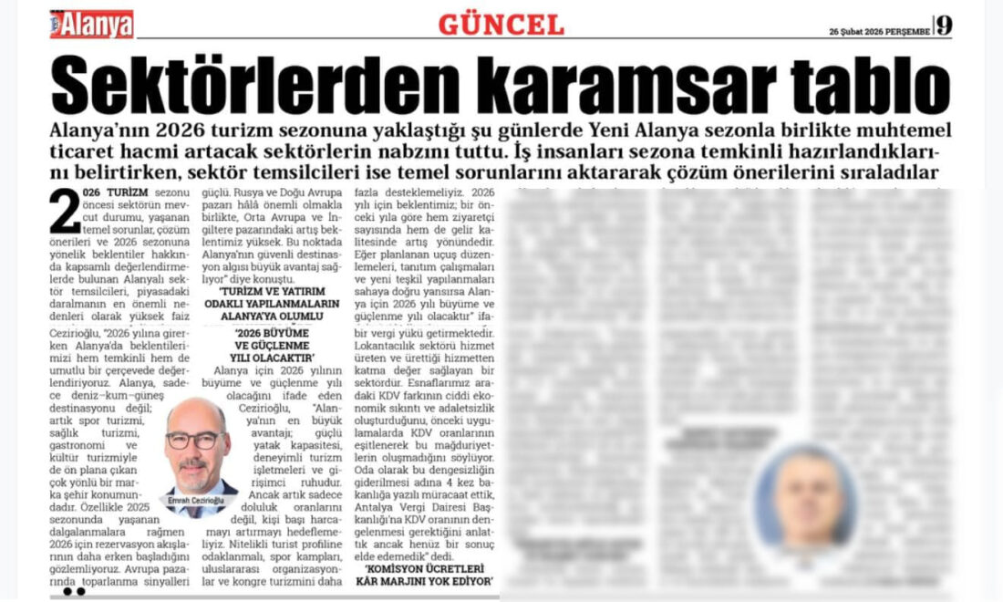 Ocak 5, 2026Alanya Sanayici ve İş İnsanları Derneği (ALSİAD) Yönetim Kurulu Başkanı Emrah Cezirioğlu, 2025 yılının değerlendirmesini yaparak 2026’dan beklentilerini paylaştı. Ceziroğlu, 2025’in hem Türkiye...